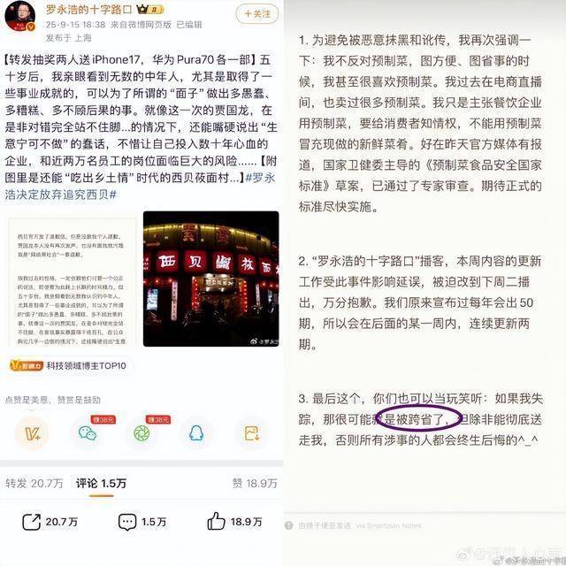 我是贾国龙。现时还没到十点。我在这里,作念出全面讲述。这是第一篇。因为今天,@罗永浩的十字街头 公开讲述的临了一句,再一次坏心挑动寰球热枕。