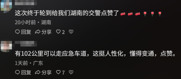 2月24日,有网友通过外交平台敷陈我方在高速上走济急车谈的阅历,并暗示高速交警的作念法求实有用,处分了本体问题,也有部分网友暗示,其时在高速上也收到领导称不错走济急车谈,但我方因为怕扣分而“不敢走”。