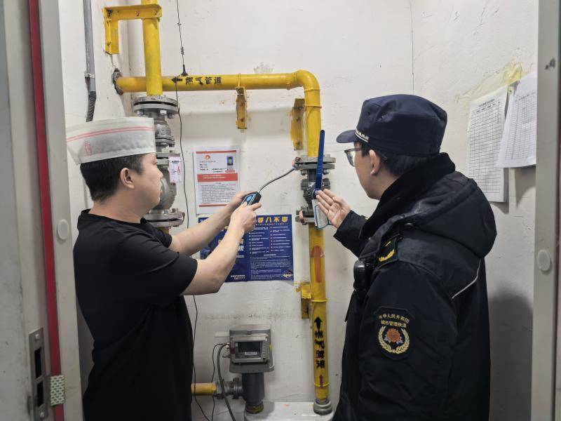 在商城四层的一家暖锅店,划定东谈主员对燃气间及操作间的燃气使用情况进行了重视查验。在燃气间,划定东谈主员重心查验了熄灭器是否在有用期内、燃气间内是否堆放杂物、强制排电扇是否处于开阔职责景况、燃气间内各类电器是否防爆等,并提醒餐馆持重东谈主要依期合营燃气公司对燃气建树进行查验与顾惜。