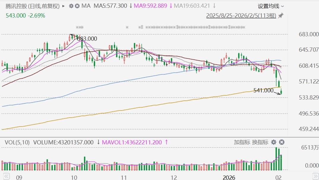 腾讯(0700.HK)跌3%至541港元,股价创2025年8月4日以来新低;为皆集第五日下落,5日累跌近13%,快乐彩app下载市值挥发逾7300亿港元。腾讯年内已累跌近10%,九游会市值跌破5万亿港元。