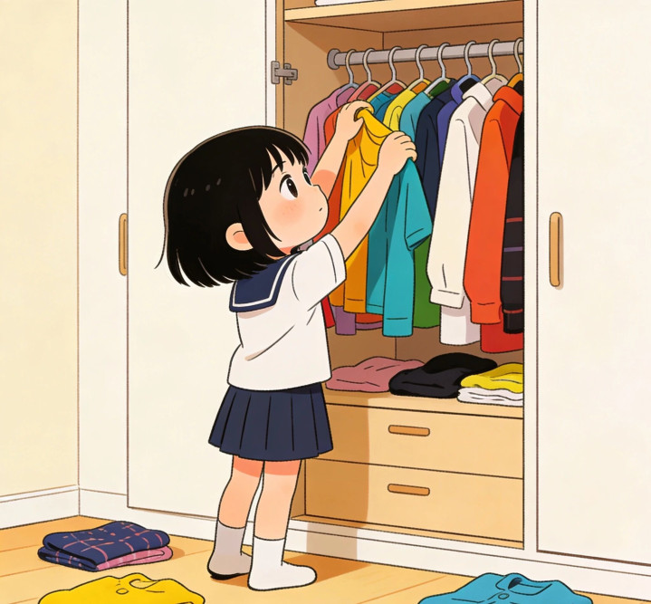 “姆妈靠不住,得我方想着。”然后趁势兼并:“未来穿什么衣着?文具准备好了吗?你我方见解。”