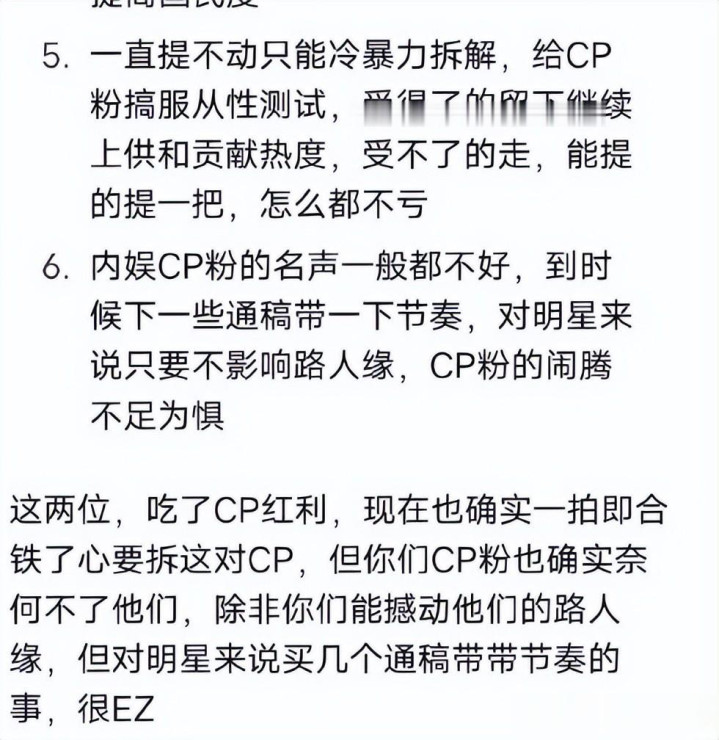 还有说,内娱CP粉的名声一般王人不太好,对明星来说,唯有路东谈主缘不坍塌,那么CP粉的感受不枢纽。