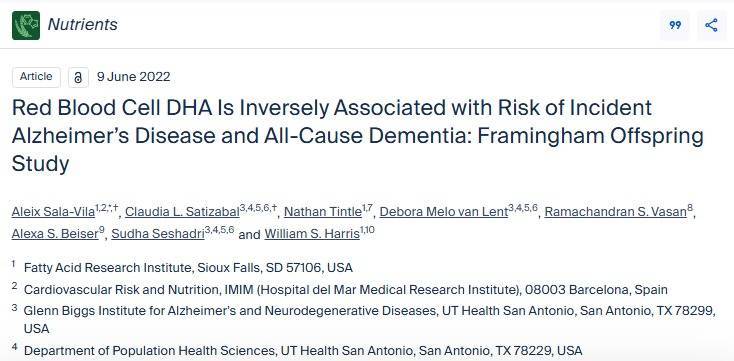 忘我有偶,《Nutrients》上一项触及近1500名年齿>65岁的未古板受试者的研究成果骄慢,血液内DHA水平较高的受试者罹患阿尔兹海默症的风险会下跌49%。