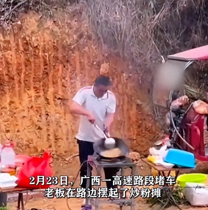 据媒体报说念,2月23日春节返程岑岭期间,广西梧州高速路段因严重拥挤,又名须眉在济急车说念旁架设转移餐车,快乐彩app下载现场制作鸡蛋炒粉。