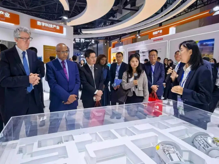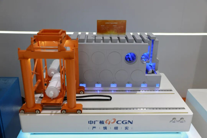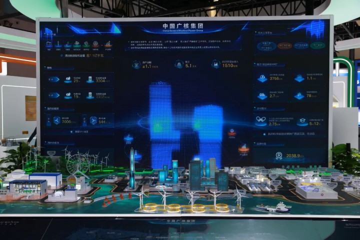 展区中枢展项“清洁能源一体化惩办有计算”电子沙盘,用橙、绿、蓝三大场景,天真展现中广核以核电、风电、太阳能赋能活力中国,以质子调治、医用同位素督察健康中国,以能源安全、安检科技护航安全中国,汇注绿色动能点亮好意思艳中国。