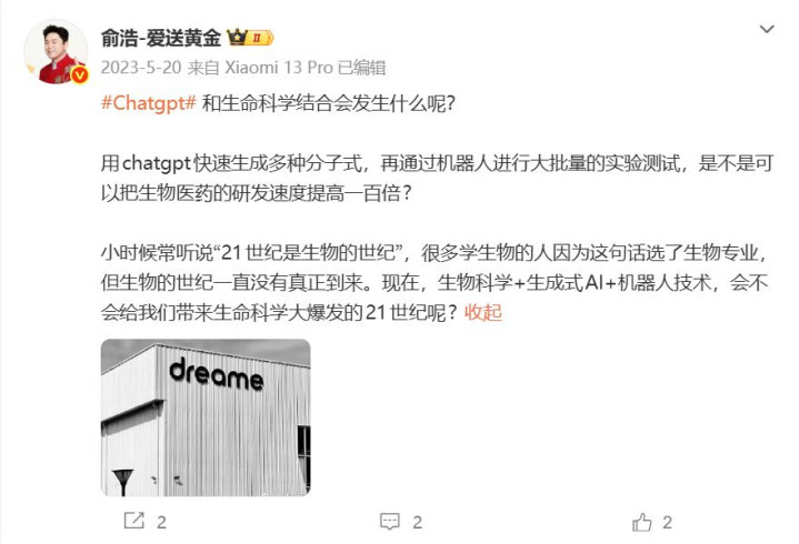 除了出手肥好意思的营销和激进的跨界外,追觅首创东说念主俞浩的惊天言论也惹东说念主经常属目。