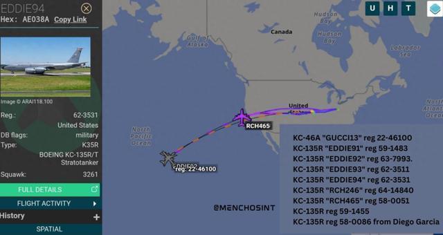 凭据群众飞动监测数据夸耀,近期好意思军在群众畛域内的扶植异每每常,要点向中东和西太平洋两个办法歪斜。其中最引东谈主瞩目的,是8架KC-135大型加油机日前经夏威夷向琉球基地的转机。